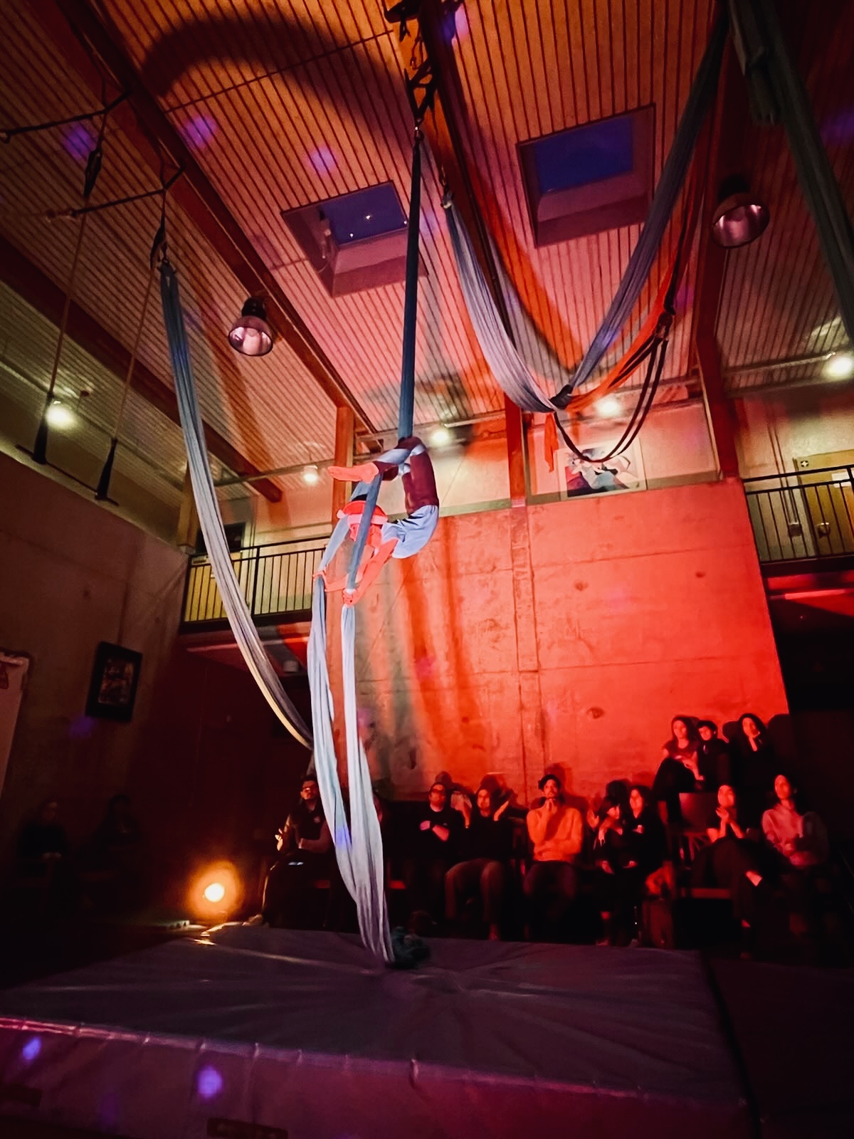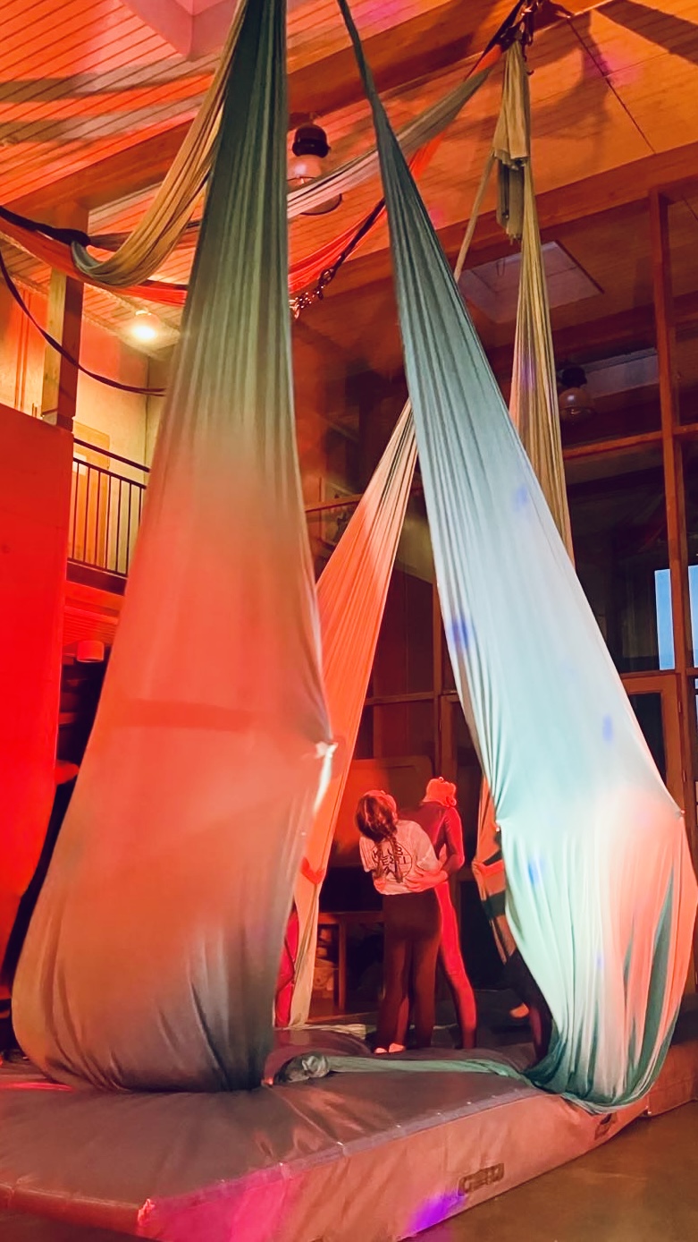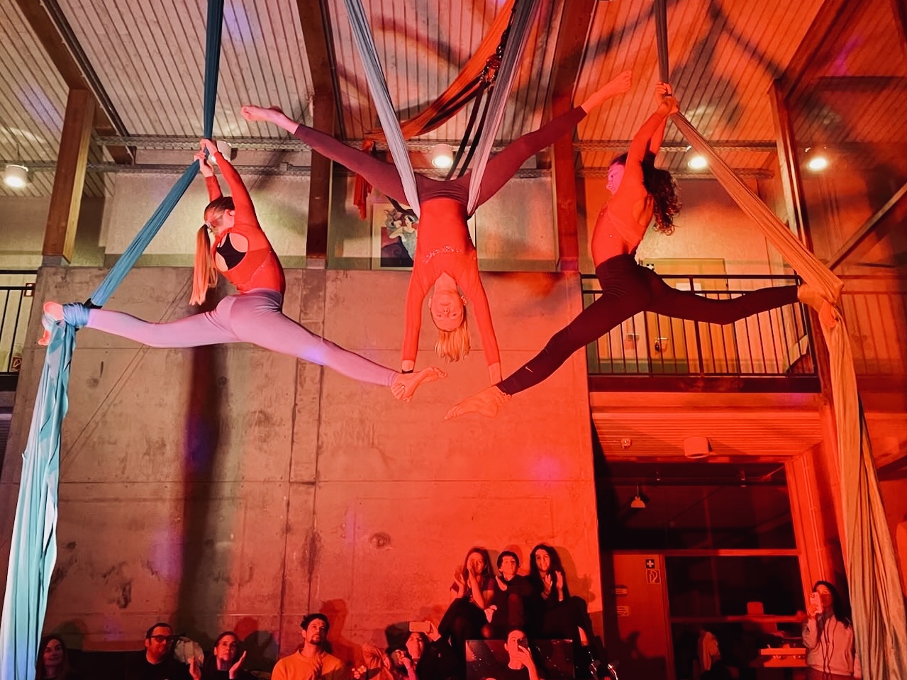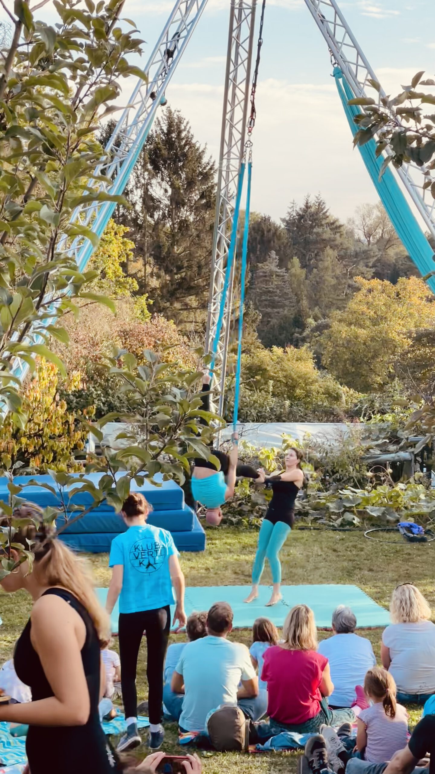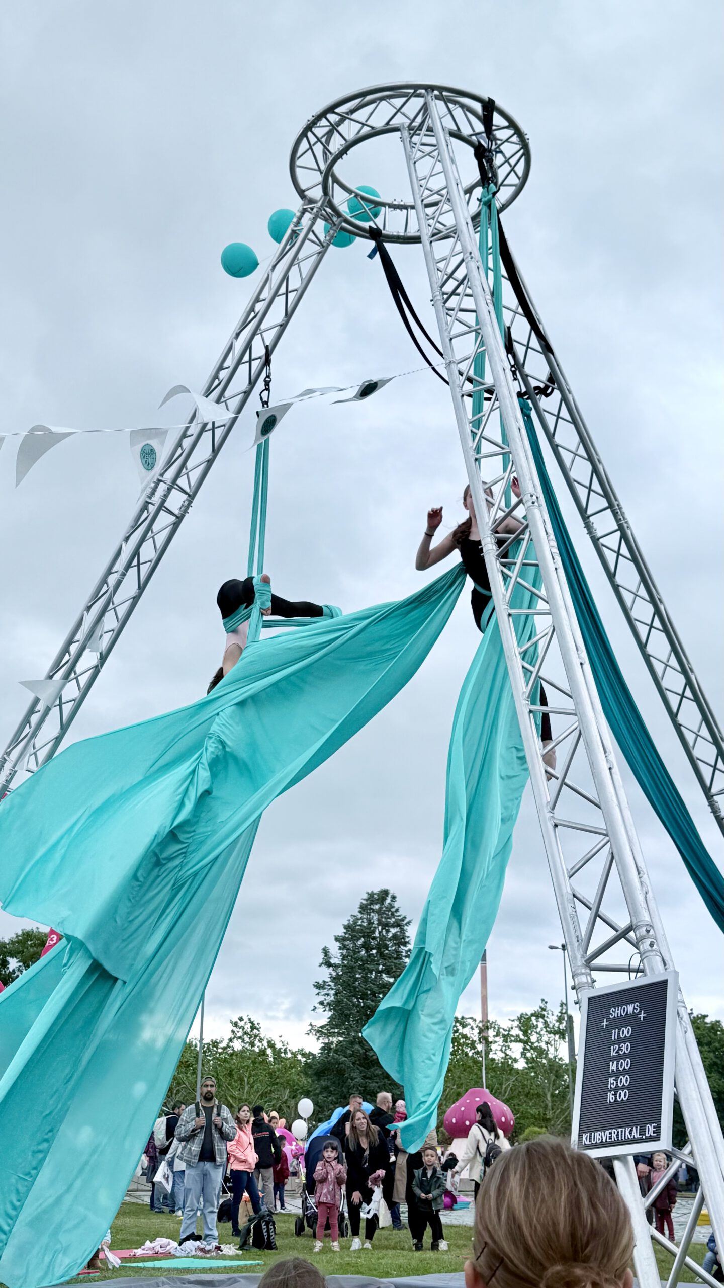 Klub Vertikal ist der Treffpunkt für Luftartistik-Kurse und Aerial Training in Frankfurt am Main. Hier sind alle willkommen, die Lust auf ein spannendes Workout über Kopf haben. Wir trainieren am Trapez, Vertikaluch, Luftring oder an den Schlaufen und Strapaten. Die Kurse sind für Anfänger und Fortgeschrittene, Erwachsene und Kinder. Ob du Profi werden willst oder einfach mal etwas Neues ausprobieren, hier ist Platz für dich. Es ist ein Workout, das körperlich fit und mental stark macht.