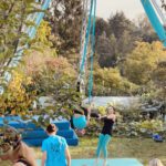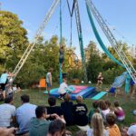 Aktuell haben wir zwei Locations, wo wir unsere Geräte aufhängen. Im Sommer trainieren wir viel outdoor im KlubGarten in Seckbach. Da das Wetter nicht immer mitspielt, ist unsere Hauptlocation im Werkhaus der Waldorfschule in Dornbusch.